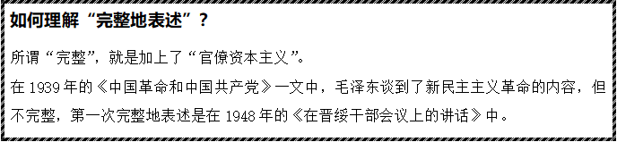 新民主主义的政治纲领:推翻帝国主义和封建主义的统治,建立一个无产阶级领导的、以工农联盟为基础的、各革命阶级联合专政的新民主主义的共和国。