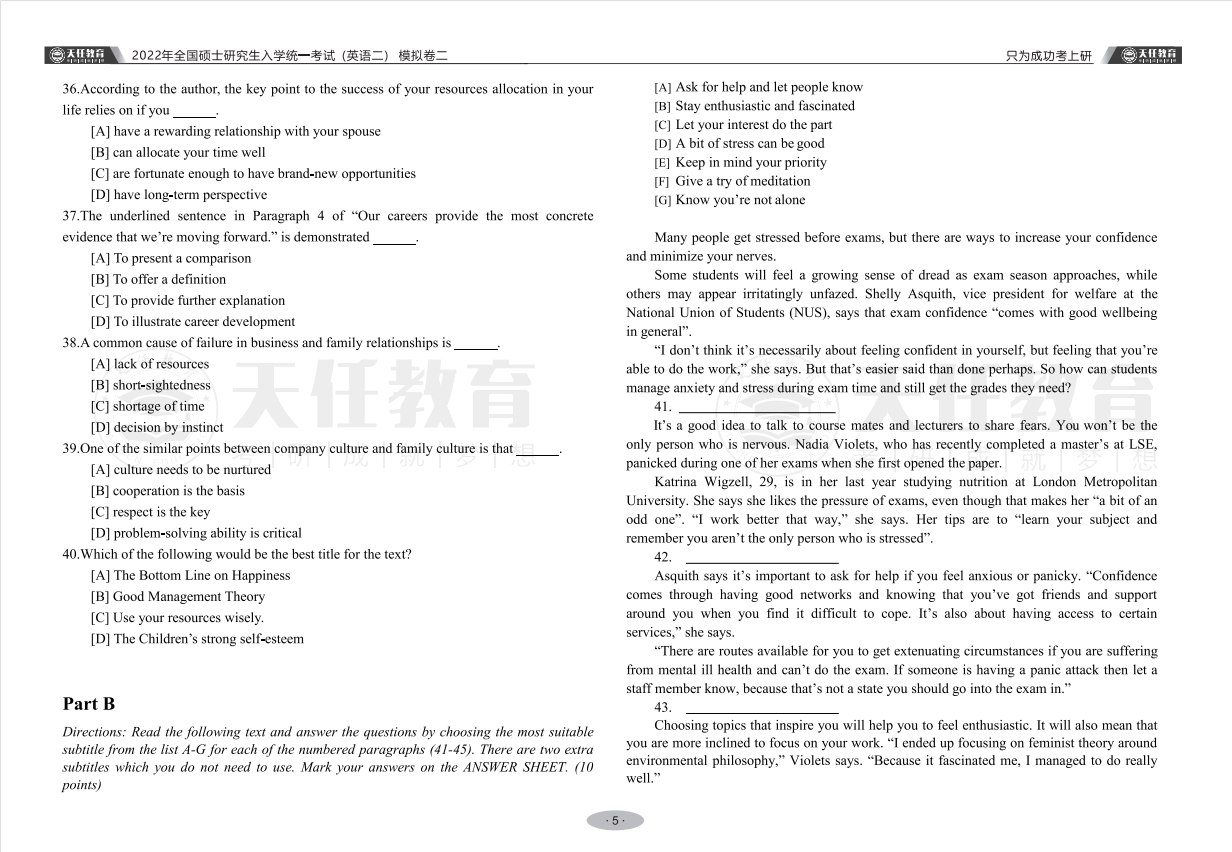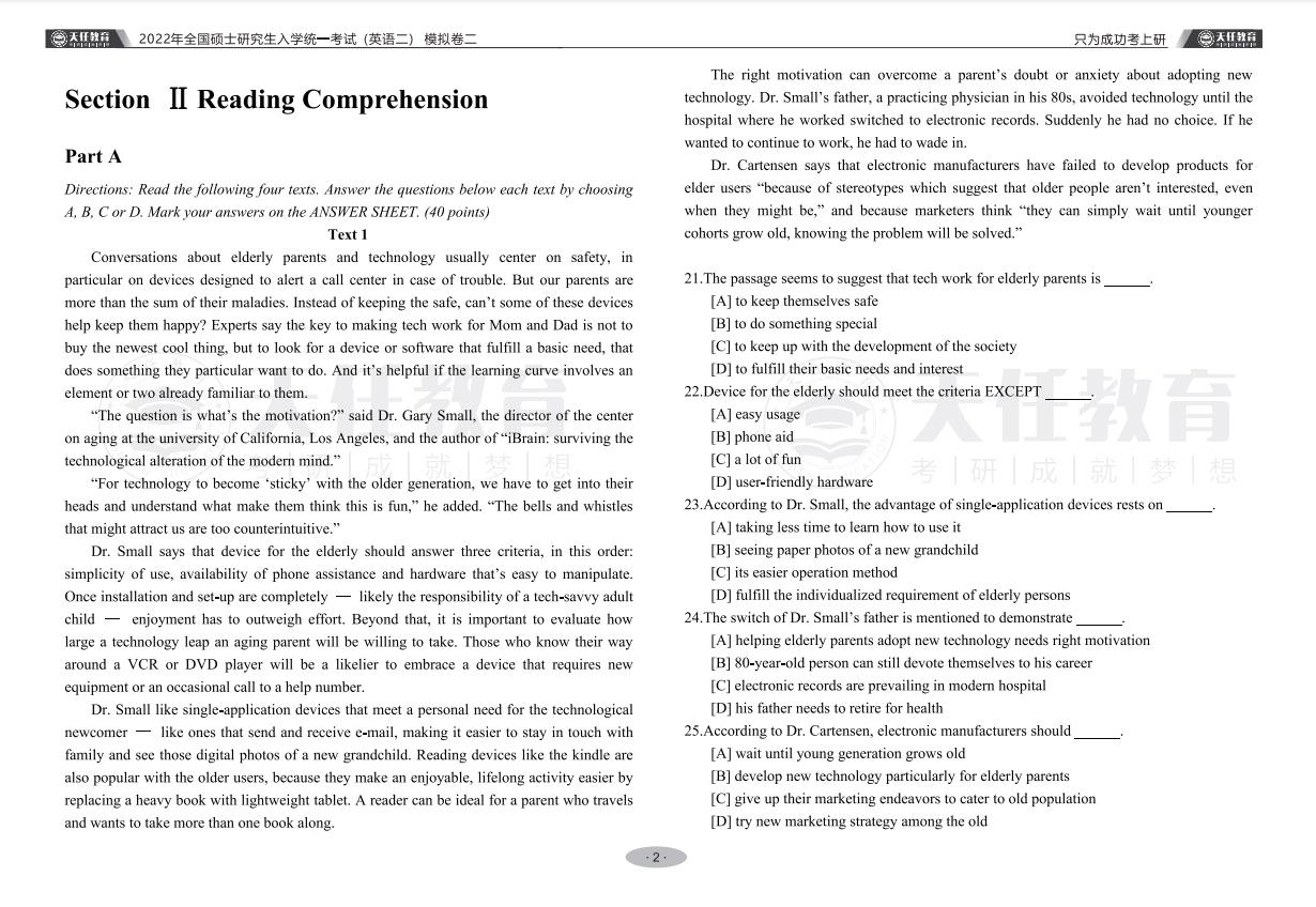 来源:天任考研 | 更新时间:2022-08-30 16:37:52 | 关键词: 英语(二)模拟卷 2022考研英语一模拟卷