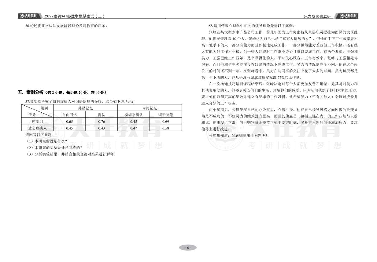来源:天任考研 | 更新时间:2022-08-31 10:57:14 | 关键词: 347心理学 模拟考试题