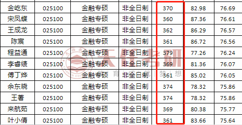 浙江地区双非财经类院校,录取均分基本在380分左右。金融专硕 项目实行双导师制度比较有名,全日制一志愿招满,非全有调剂名额,在当地就业率很占有优势。