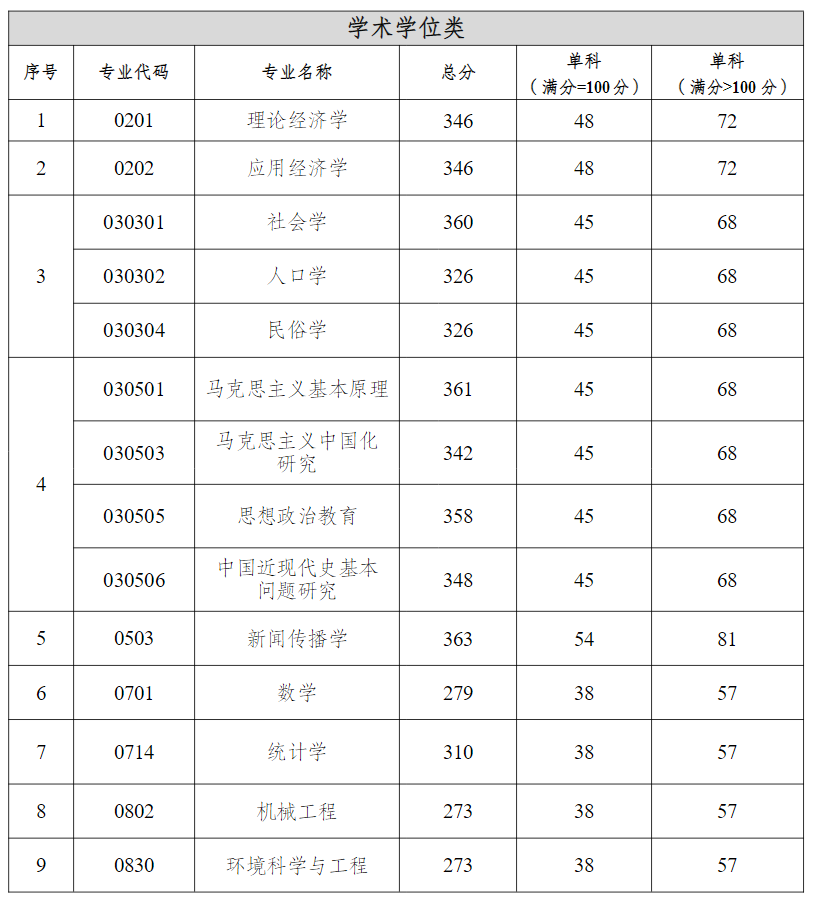 重庆工商大学2023年硕士研究生招生考试考生进入复试的初试成绩基本要求