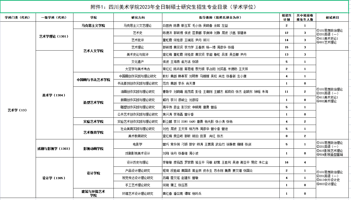 以上就是“2023年四川美术学院考研专业目录(专业学位)”相关内容,更多考研院校专业目录的相关内容,请持续关注天任教育专业目录栏目,祝大家考研成功。