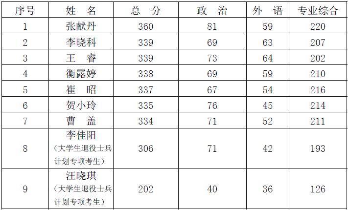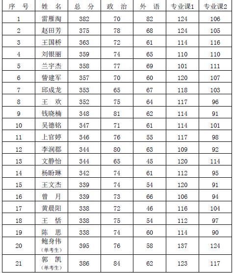 6、总成绩(750分)=初试成绩(满分500分)*90%+复试成绩(满分300分)。复试结束后,分专业按总成绩排序,依次录取。复试总成绩低于180分,视为复试不合格,不予录取。
