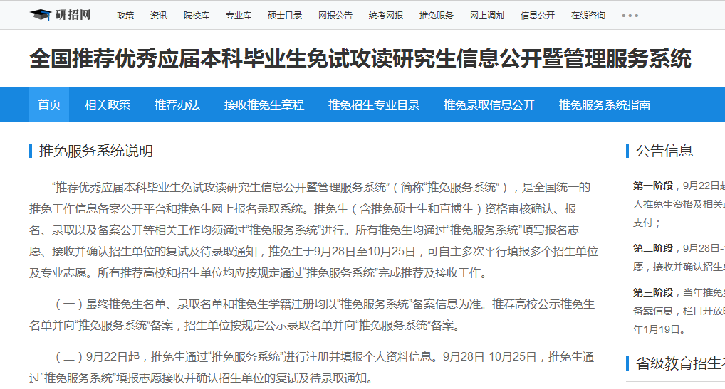 (1)进入全国推荐优秀应届本科毕业生免试攻读研究生信息公开暨管理服务系统。